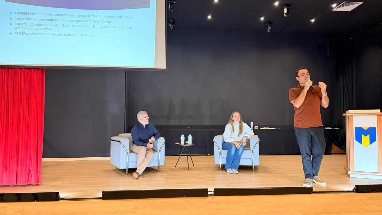 Dia 11 de fevereiro foi realizada a Reunião de Planejamento do primeiro semestre de 2026, com a participação do Prof. Dr. Cláudio Romualdo (Fundador), do Prof. Dr. Antonio Esteca (Diretor Geral), da Profa. Dra. Fernanda Esteca, do Prof. Dr. André Machi, do Prof. Me. Caio Carboni (Diretores Acadêmicos), além de docentes, mediadores pedagógicos e coordenadores dos cursos da FAMEESP, FATECE e FAMEF.